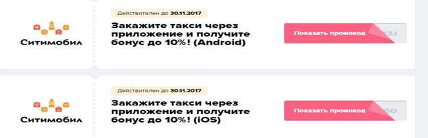Мобильное приложение «Ситимобил» дарит своим клиентам скидки на поездки на любые направления. Для получения бонусов вам нужно скачать приложение на «Google Play» и «AppStore» и активировать промокод.